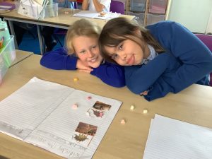 In Science the class have learnt how rocks are formed. Ask us about it! We used sweets to show how sediment under pressure becomes sedimentary rock such as slate. With heat from the Earth’s core, (or our hands) the sedimentary rock morphs into metamorphic rock. Finally, with the help of a microwave, we heated our metamorphic rock until it turned into sizzling magma. As this cooled, it perfectly demonstrated how igneous rock is formed, in a much shorter time span than millions of years!