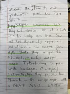 We have been blown away this week by the quality of writing in the class non-chronological reports. Ancient Egypt has certainly sparked a lot of interest which is evident in the children’s writing. We can’t wait to edit and publish next week!