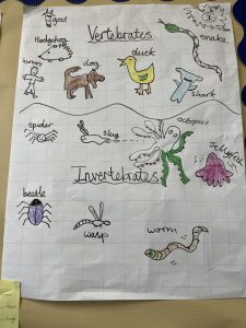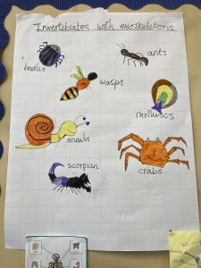 In Science we have been exploring classifications and have sorted animals into different categories. Firstly, we grouped into vertebrate and invertebrates and then we moved on to explore exoskeletons and why some invertebrates have them.