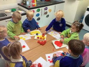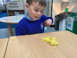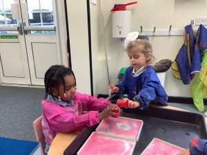 We enjoyed getting messy this week by making slime, making jelly and printing with a range of objects in the classroom. This week we have introduced the children to story dough. Story dough is when you create a story with the playdough. This is a great opportunity to introduce new vocabulary to the children.