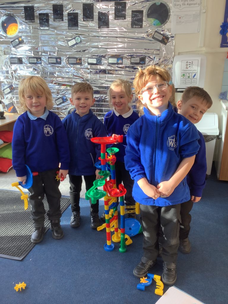 The marble run has been a big hit in Pufferfish this week! The children have enjoyed challenging themselves to create labels and signs for their models, producing some wonderful early writing and spelling, such as “big” and “legs.”