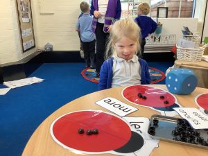 We continue to develop our mathematical skills. We have been comparing groups of objects by saying which group has more or less objects.