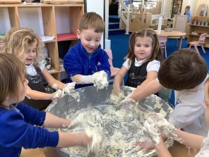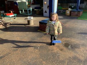 We have taken advantage of the weather over the last few weeks. Starfish have been helping to sweep the puddles away. This is a fun way to strengthen their gross motor skills.