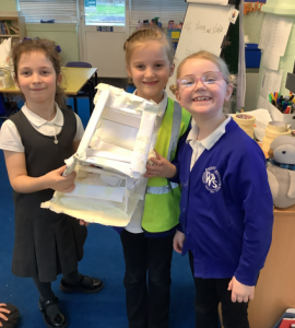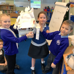 In DT, we used our teamwork to create a chair out of paper and masking tape. The chairs had to be stiff, strong and stable enough to hold baby bear. A few of them were even strong enough to hold mummy and daddy bear!!