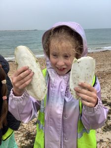 What a resilient class we have! Despite the forecast being ‘light showers’, our beach school day was a complete wash out! From the moment we arrived, the rain poured down. But did it stop us having fun? No it didn’t! The class found lots of treasures on their beach treasure hunt and lots of children paddled too. Some children said the sea water was warmer than the rain! Well done Year 3 for making the most of it! Fingers crossed for better ‘summer’ weather on our trip next week!